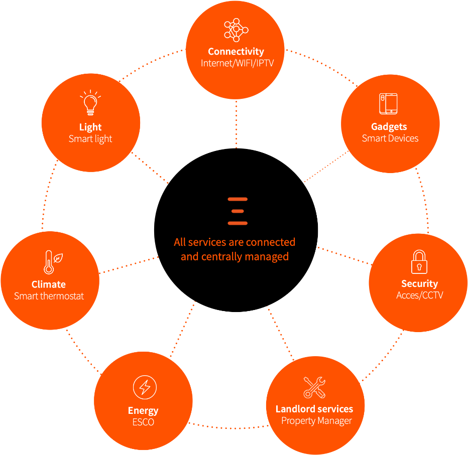 It’s all there. Your home comes with built-in state-of-the-art smart home functionalities. No need to install anything. A range of use-modes, scenes and premium services are available. Just activate whenever you feel like it and personalize settings to serve your lifestyle. Manage all services from your personal account.
